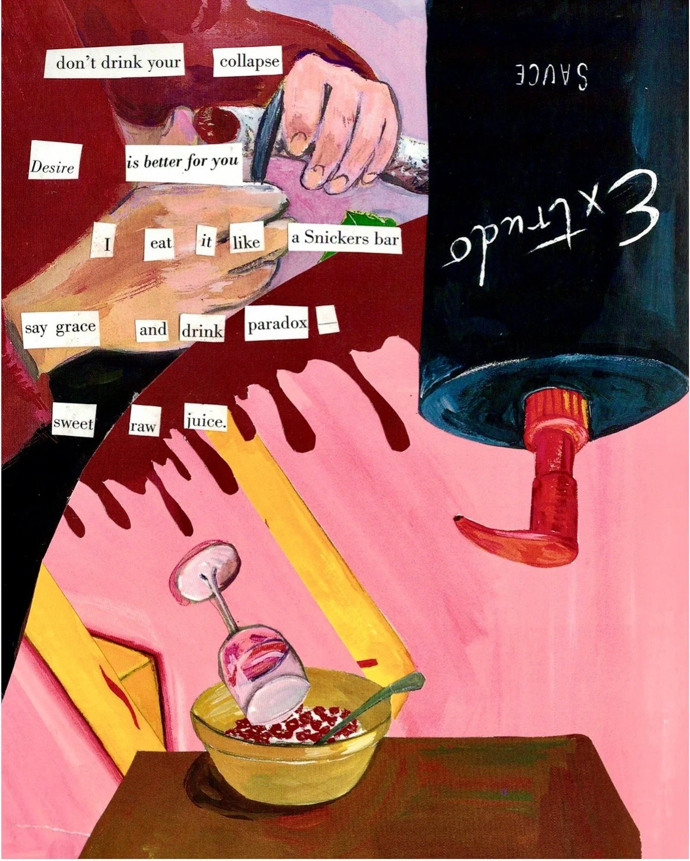 Poets are not record-keepers. They do not, as it were, recount histories, nor do they describe the world simply as it is (as if that was ever simple). What poetry and the arts offer is perhaps not the big picture, but a thousand small ones, each a microcosm of the way we live and have lived. In this issue, you will find our contributors asking you to look closer, across memories and places, to see how the emotional truth interrupts and links these moments together. As Anya Johnson writes; “One year an east coast relation sent me a plastic evergreen, doll-sized. I cried openly, the blunted needles unpluckable. At six my father left.” Cover artist Sabrina Thompson’s “Because You Loved Me” is literally stitched together by memory: photographs and figures of her family’s past come together to make grand sculptures, creating a rich work overflowing with memory.