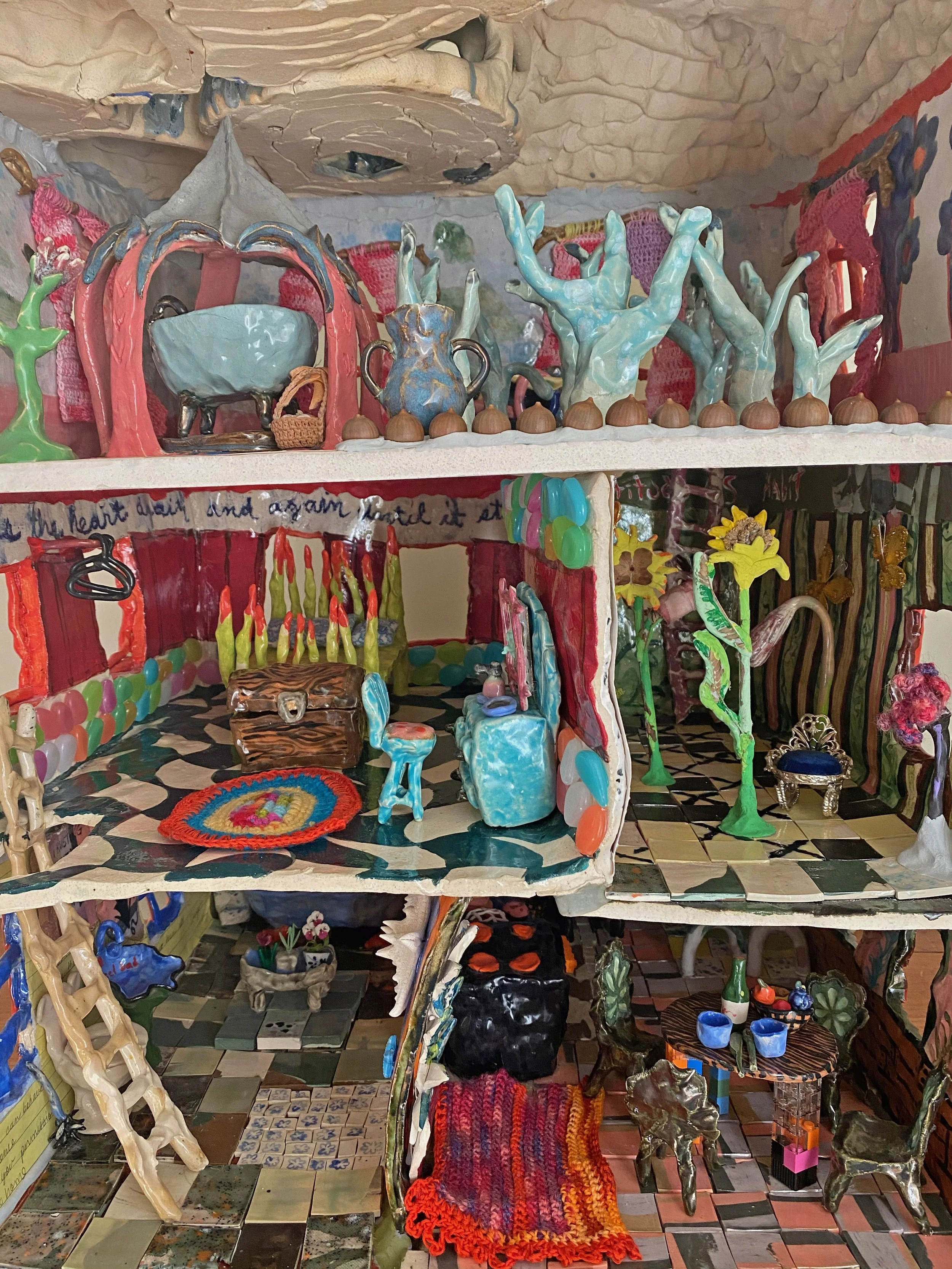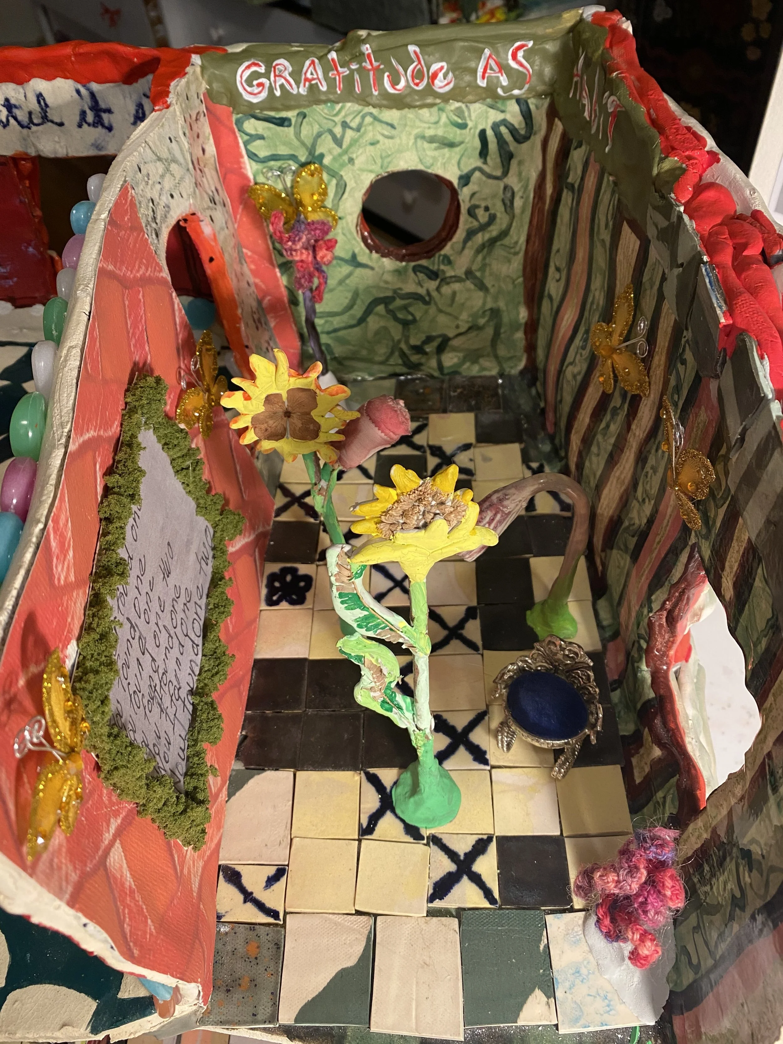 Gratitude Room is a dollhouse I made over many years when I didn’t have a studio. I made it piece by piece in breaks at work.