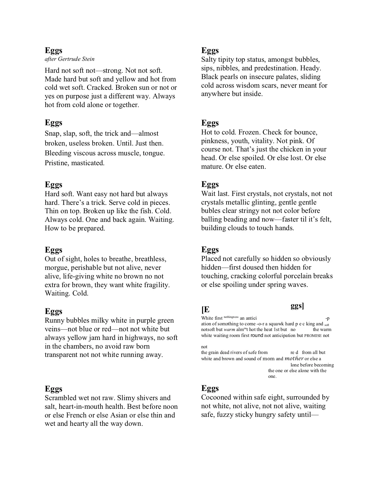 Eggs May 13 Written By The Poetry Society of New York By Kalyn McAlister The Poetry Society of New York Poetry belongs to us all. http://poetrysocietyny.org